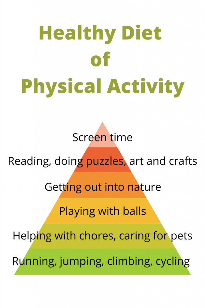 I bambini hanno bisogno di sedersi e riposare fisicamente durante il giorno e i bambini hanno bisogno di essere attivi durante il giorno. Proprio come non ci aspetteremmo che un bambino viva con un solo tipo di cibo, non dovremmo permettere che la maggior parte della giornata riguardi un tipo di attività o riposo, ma piuttosto un buon equilibrio distribuito durante il giorno.
